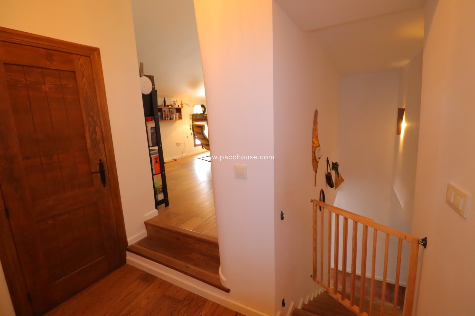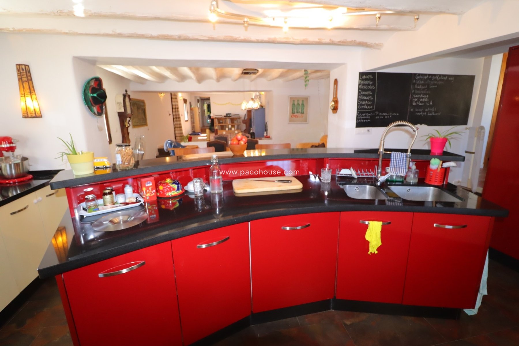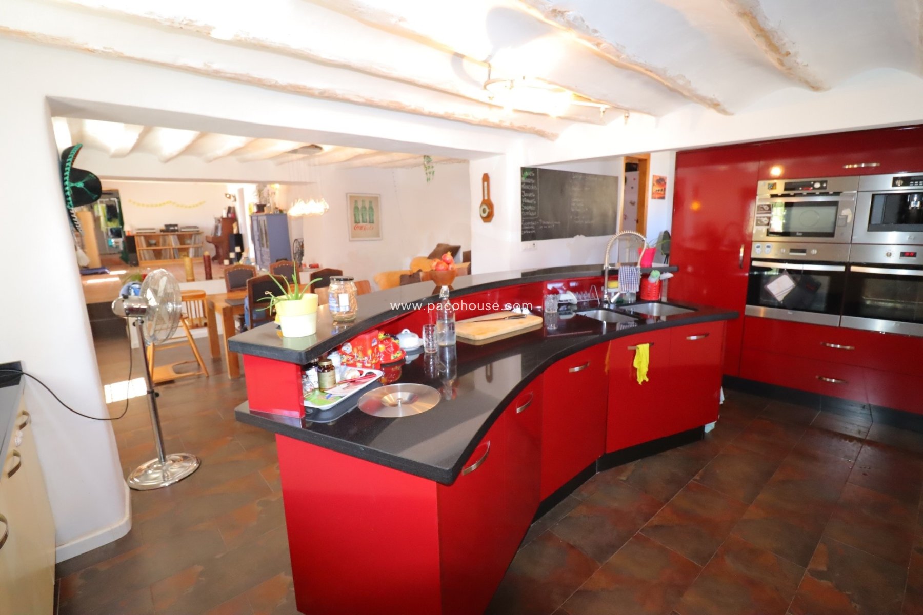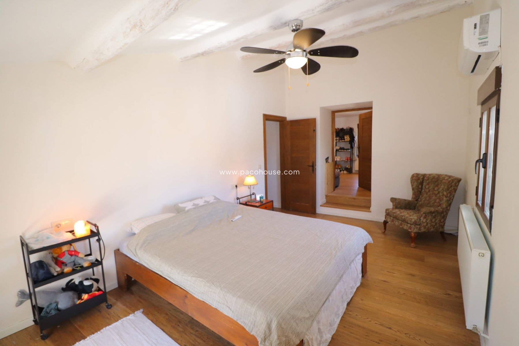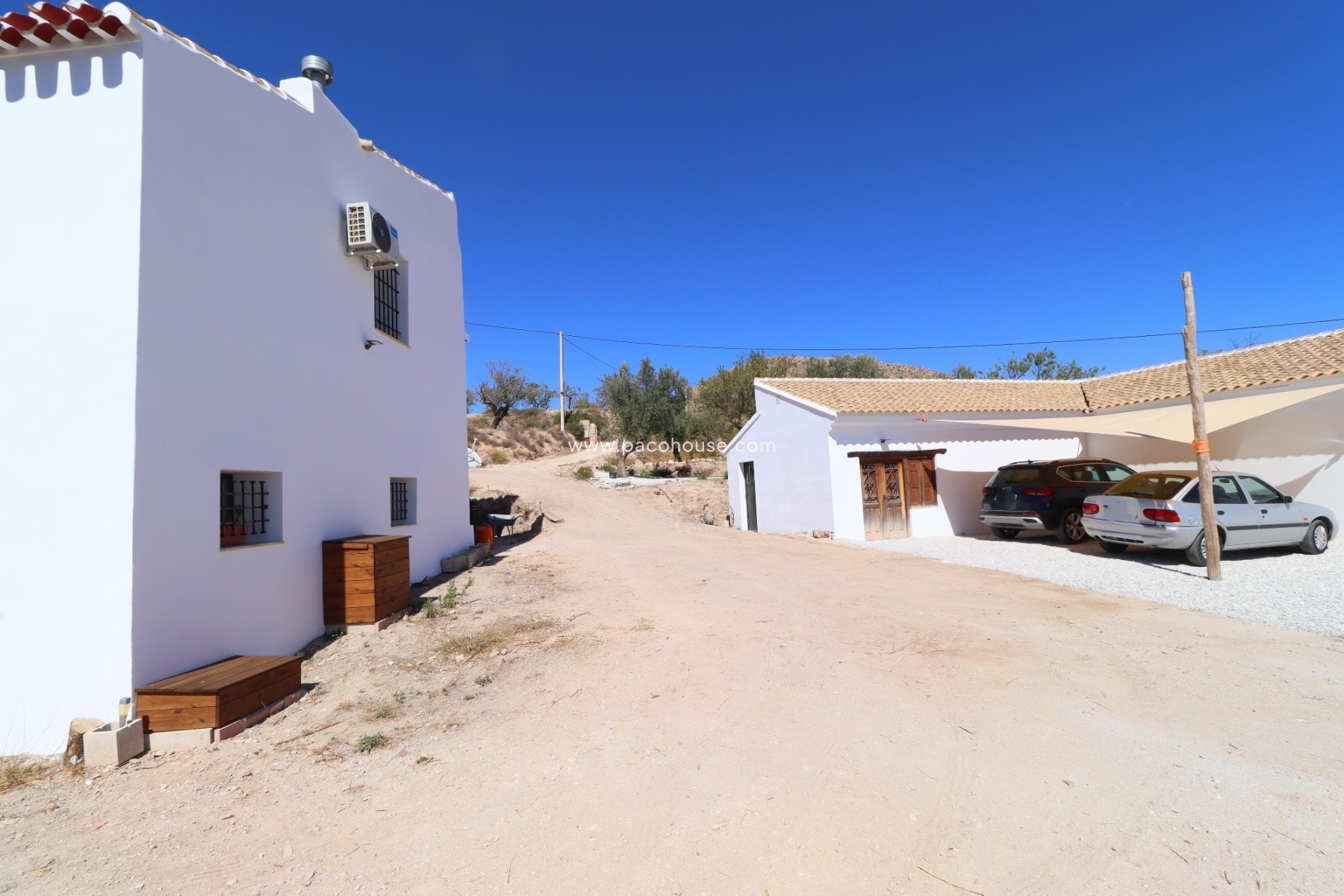 Large, impressive and beautifully renovated cortijo with a total of 5 bedrooms, all upstairs (there are two further rooms on the ground floor which could be converted into additional accommodation) and 3 bathrooms (plus one toilet downstairs), an adjoining outbuilding with separate entrance currently used for storage (31 m2). There is also a separate self-contained 1 bedroom 1 bathroom apartment with licence for rental (“vivienda rural”) for 4 guests. On a lower level we find the stables for horses with full permission from authorities. Mains water and electric plus water rights to spring water and a 11m x 7m balsa (water storage) to store the water which perhaps could be converted into a pool. The property sits on a plot of just over 4 hectares (41287 m2) which is on different levels and is situated in a privileged location with breathtaking views of the valley and stunning mountain landscape including the beautiful hilltop of " La Muela", just under 4 minutes’ drive or a 15 minute walk from the beautiful hillside town of Velez-Blanco with its Renaissance castle at the very top.