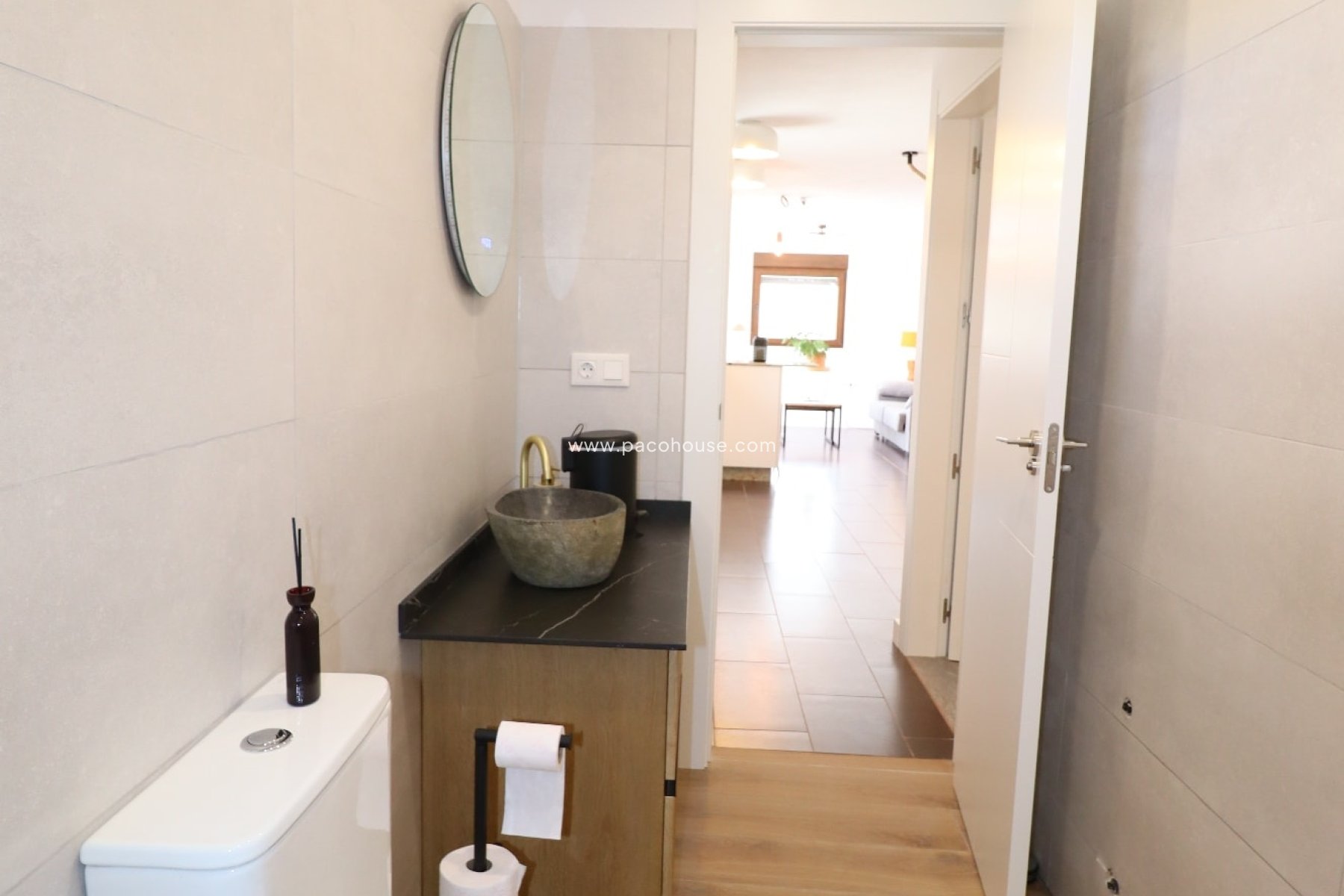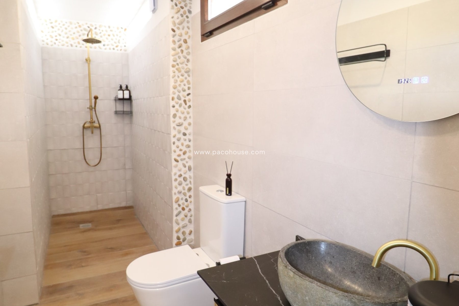 Beside it is a separate and totally private self-contained brand new apartment with its own patio area and gardens laid with plants and stones. This modern apartment with license for rental consists of an open plan lounge-living-kitchen with dining area. Wall and base quality units with granite worktops and appliances such us electric hob, microwave and mini-fridge. A short hallway leads to the shower room with vanity unit and walk-in shower. Adjacent double bedroom with air-conditioning unit. Good quality PVC windows with shutters and pre-installation for central heating.