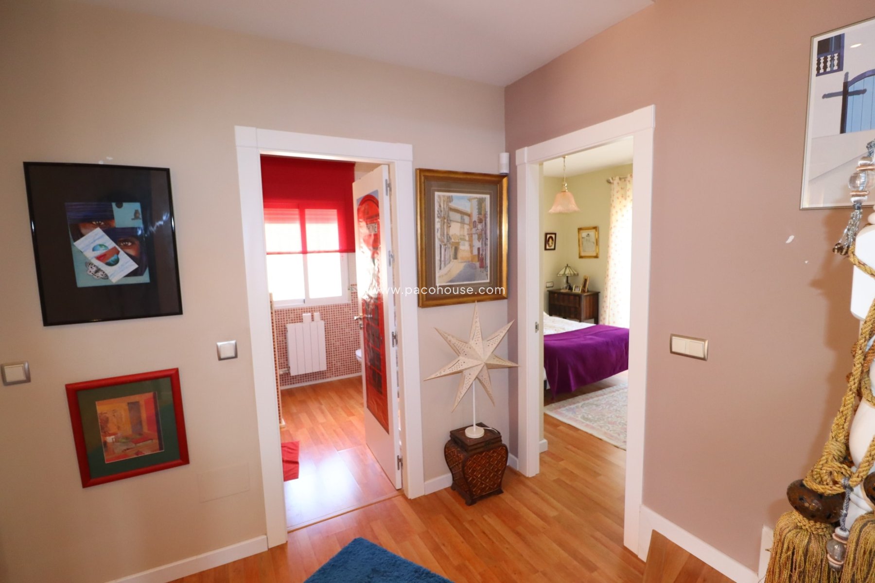 From the end of the hallway a wide staircase leads up to the upper level. This comprises of an enormous, airy living room (it could be a further bedroom) with large patio doors leading out to the roof terrace offering a wonderful view of the surrounding countryside and mountains. From the living room a door leading opens to a spacious twin bedroom, also with patio doors out to the roof terrace. Adjacent to the twin bedroom is a further bathroom, with large vanity unit, corner bath and toilet.