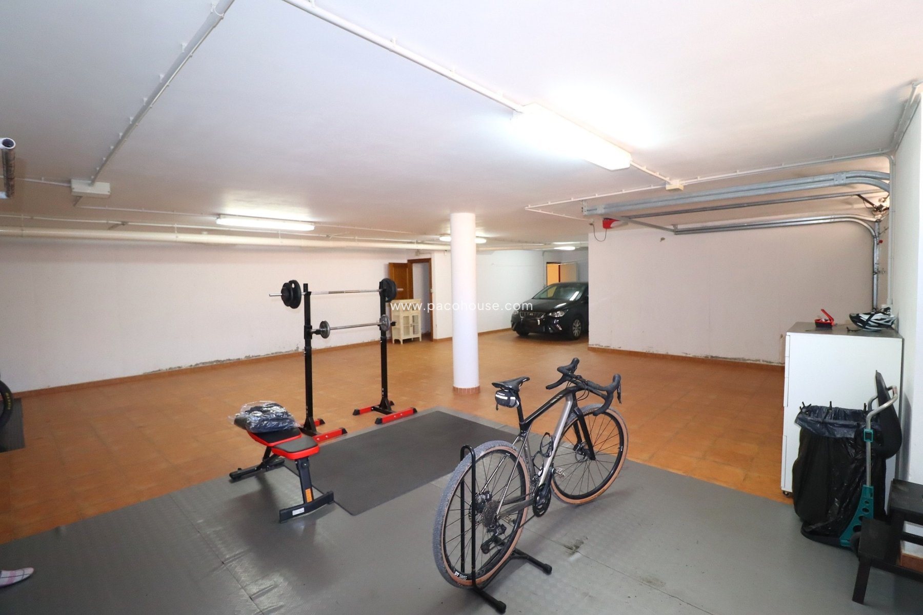 Wrought-iron electric gates from the street open to the ramp which takes to the enormous basement-garage.
