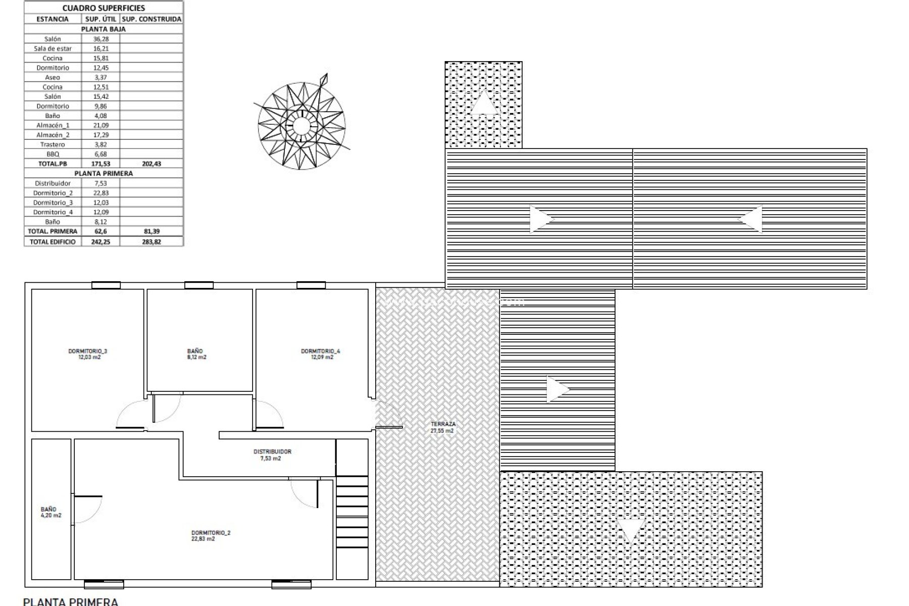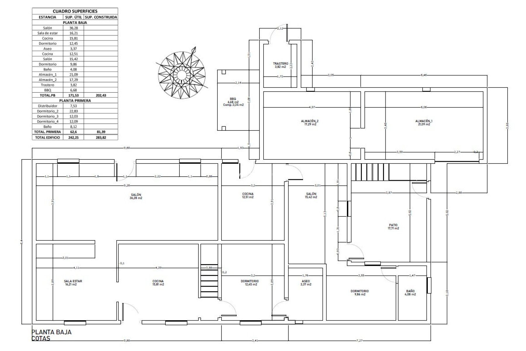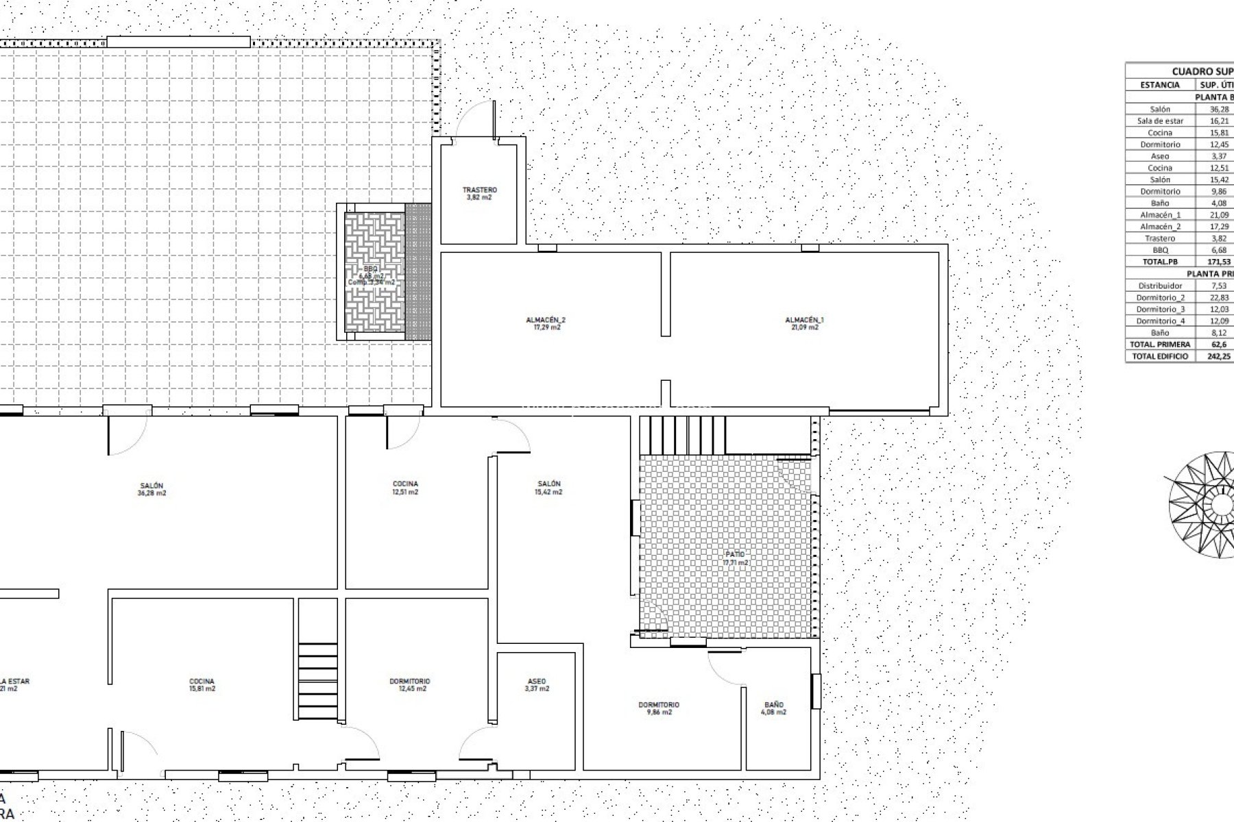 Detached two-storey 3 bed 2 bath reformed cortijo with a self-contained 1 bed 1 bath guest/granny annex, large store room, and a wonderful large private walled patio/entertaining area with BBQ area, alfresco dining and sitting area; set in a large plot of irrigated land with rights to agricultural water. The house is conveniently located, just a 3 minute drive from the market town of Velez Rubio, with a wider range of shops, banks, bars, a weekly market, 24h health centre, etc. With easy access to the A-92 Murcia-Granada motorway which leads to Granada and the Sierra Nevada ski resort in one direction and the E15/A7 coastal motorway in the other direction, giving easy access to the airports of Almeria, Murcia and Alicante. The coastal resorts of Aguilas (Murcia), San Juan de Los Terreros, Vera and Mojacar (Almeria) are within an hour drive.