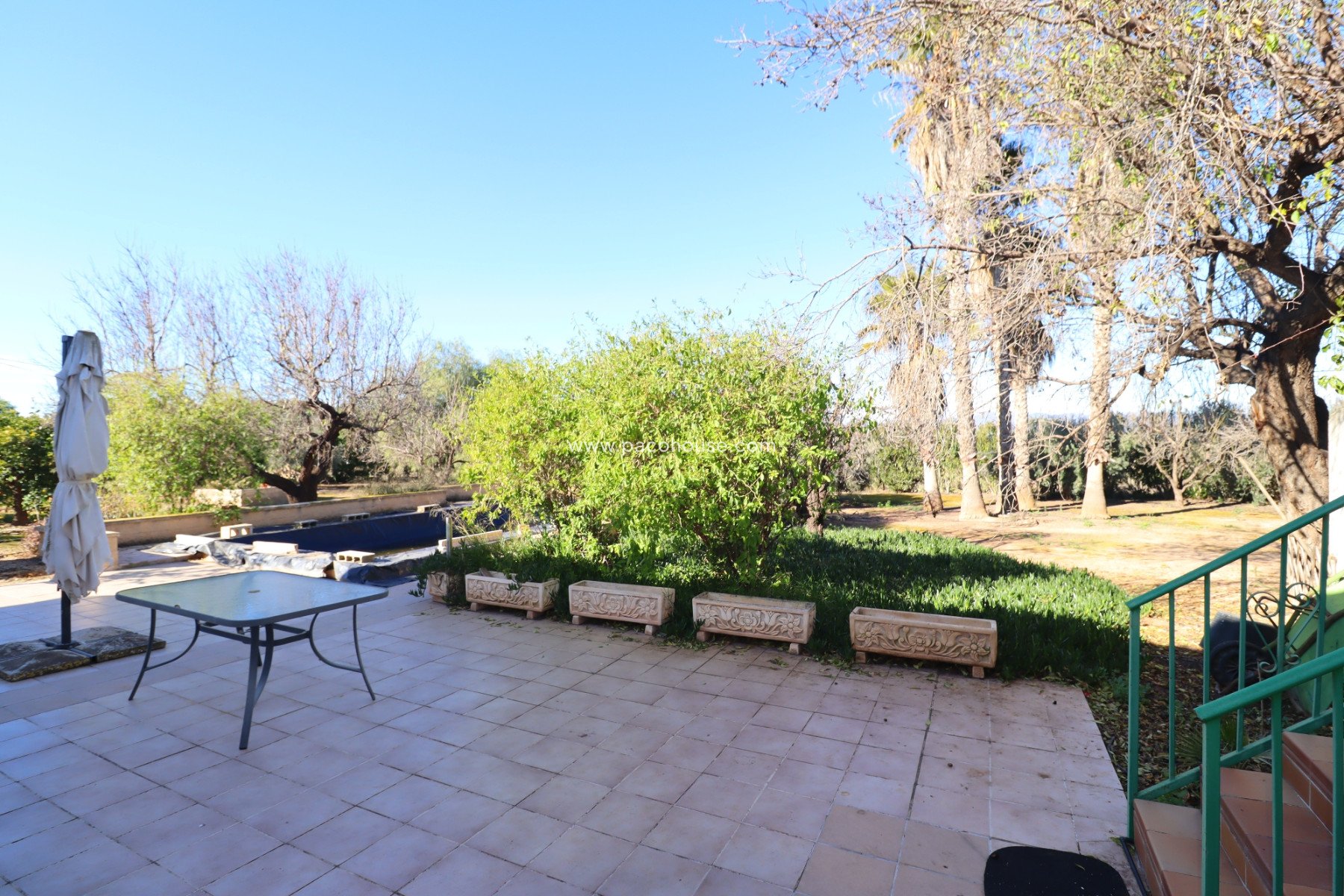 The plot is landscaped with many plants, fruit trees, orange and olive trees with drip irrigation from a separate agricultural water supply. Plenty of space for a vegetable garden.
